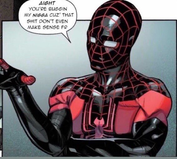 I think the reason many Black comic book and video game enthusiasts want Miles to say “nigga” is because they want him to be connected to that experience in that way, the way they are. Tons of Black teenagers in the five boroughs say “nigga”, and it wouldn’t be out of the blue for Miles to do so either. But as aforementioned, that’s not happening when white writers are writing Miles Morales’ character.